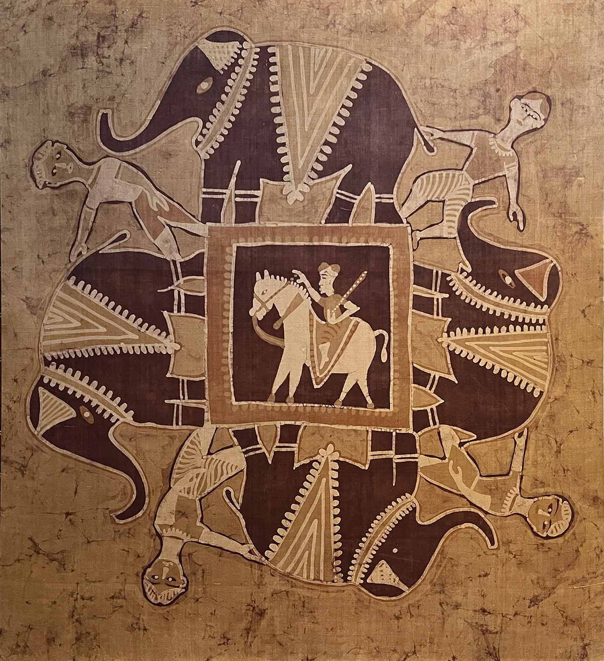 In the early 1970s Cary traveled to India where he met rug merchant, Nazrudin in varanasi. It was the beginning of Cary’s love for textiles. During that time he opened Rug Den in Harvard Square selling carpets and other textiles from India. The batiks in this collection are by a well known artist whose name, sadly, we no longer know.